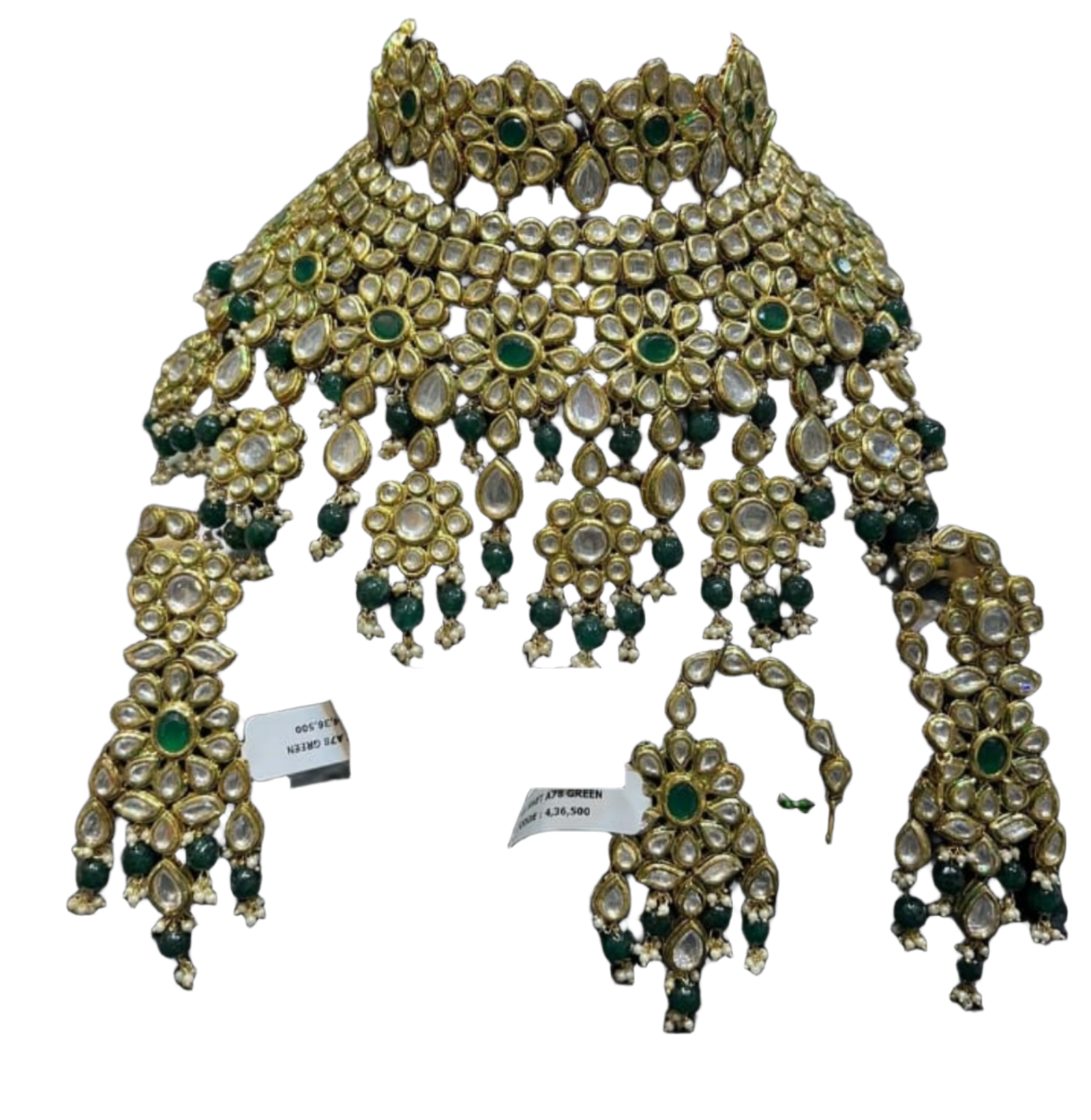 Necklace: The centerpiece of many jewelry sets, necklaces come in various lengths and styles, from delicate chains to elaborate pendants. They are designed to adorn the neck and can feature gemstones, pearls, or intricate metalwork. Earrings: Earrings complement the necklace and frame the face. They can range from simple studs to elaborate chandelier designs, often incorporating the same motifs or gemstones as the necklace for a unified look.