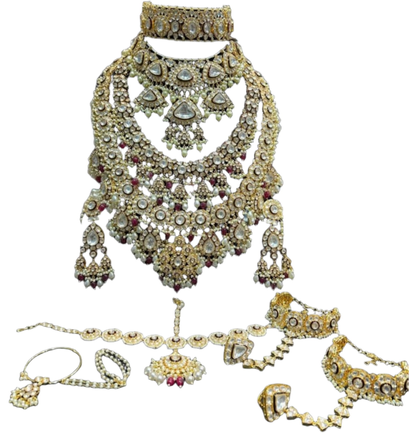 Necklace: The centerpiece of many jewelry sets, necklaces come in various lengths and styles, from delicate chains to elaborate pendants. They are designed to adorn the neck and can feature gemstones, pearls, or intricate metalwork. Earrings: Earrings complement the necklace and frame the face. They can range from simple studs to elaborate chandelier designs, often incorporating the same motifs or gemstones as the necklace for a unified look.