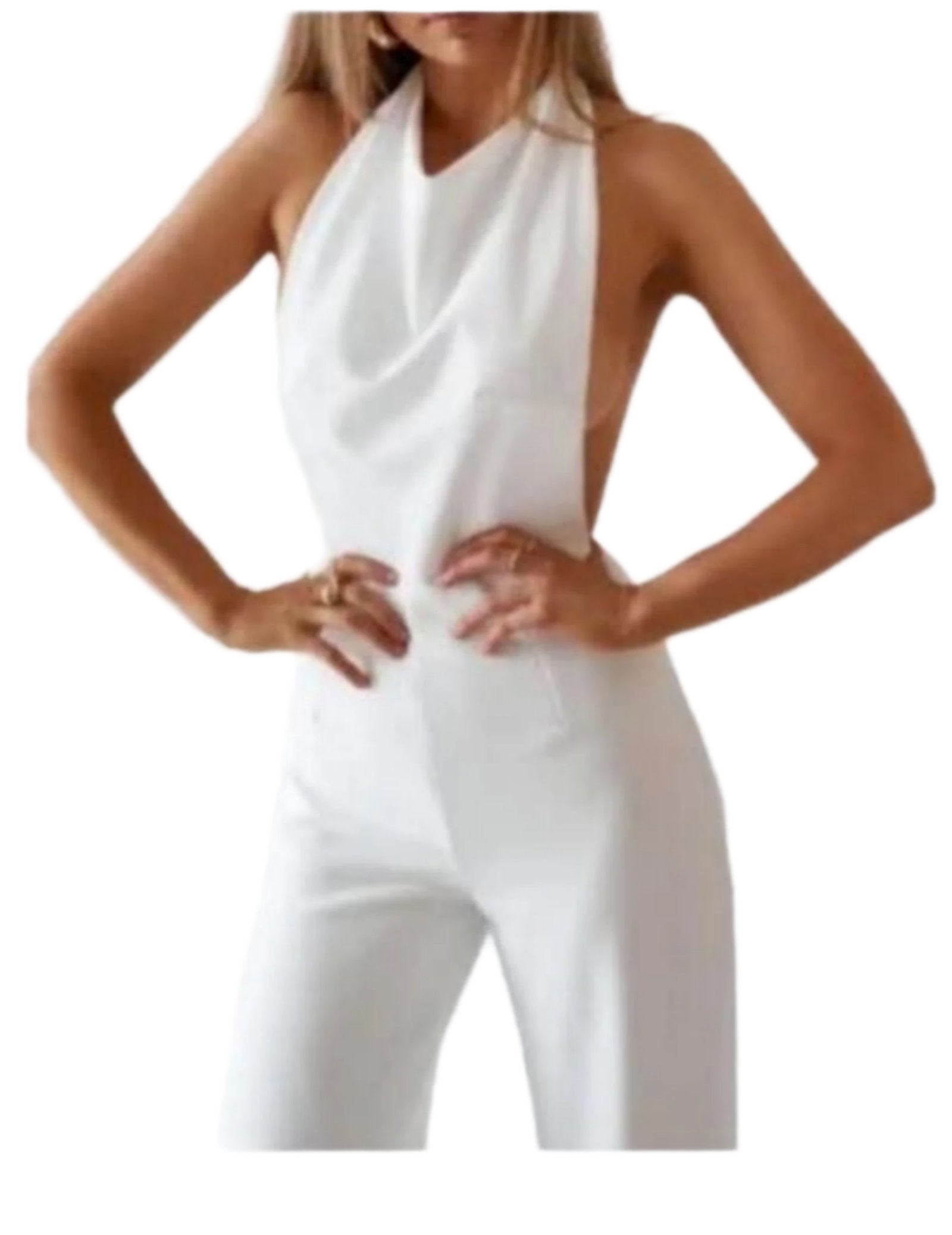 The Backless Jumpsuit is made from the opaque scuba crepe fabric available. You’ll feel secure without needing to be strapped in.