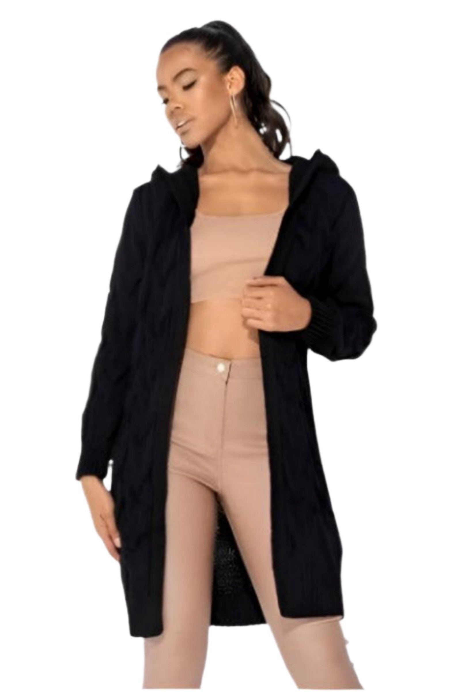 Get your hands on some of the hottest knitwear around be ready for the new season. This midi chunky cable knit cardigan featuring hood & edge to edge detail is great teamed with a pair of skinny jeans for the ultimate casual day look.