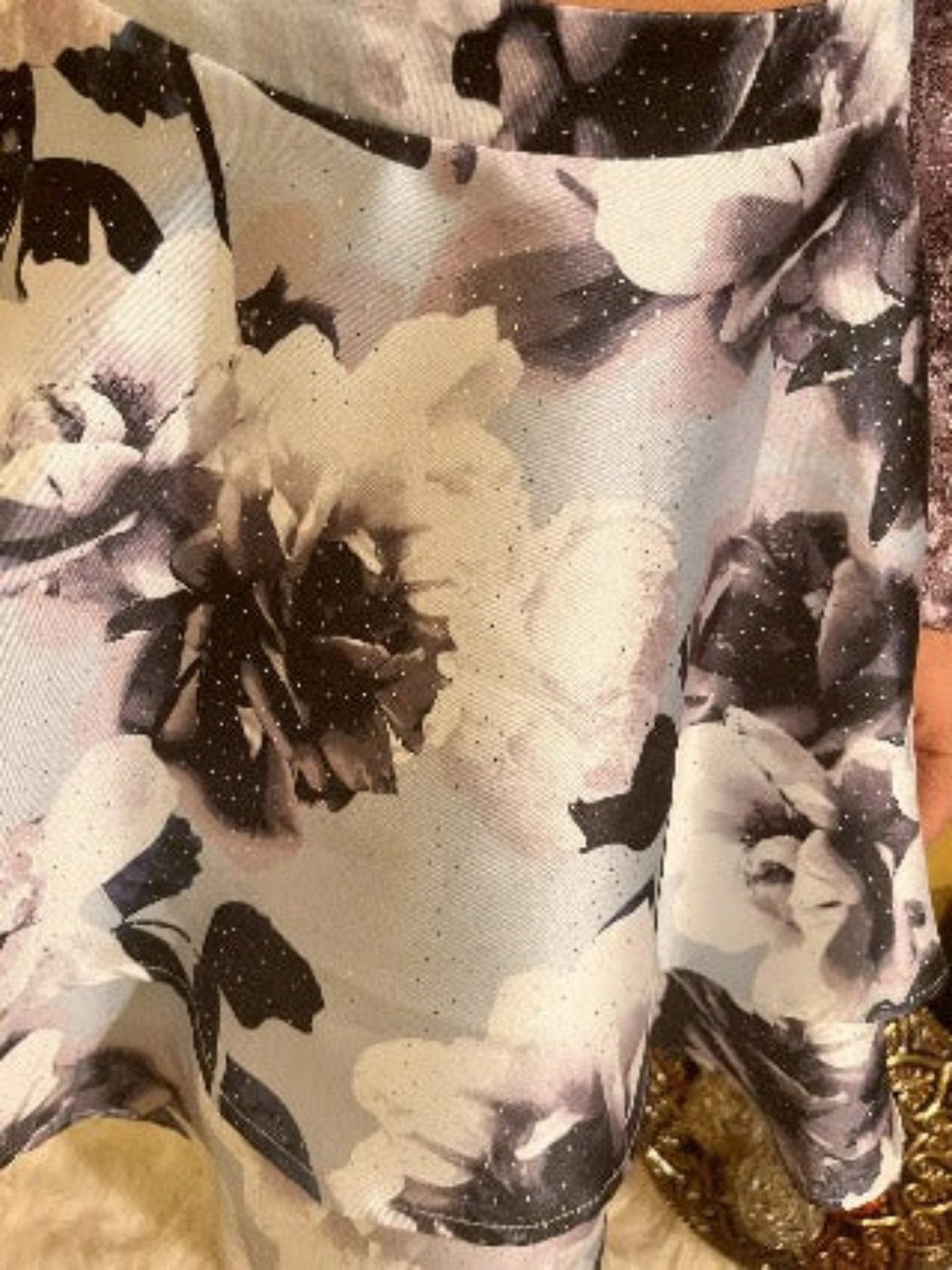 High-waisted floral print glitter mikado double hem skirt with zip-back closure