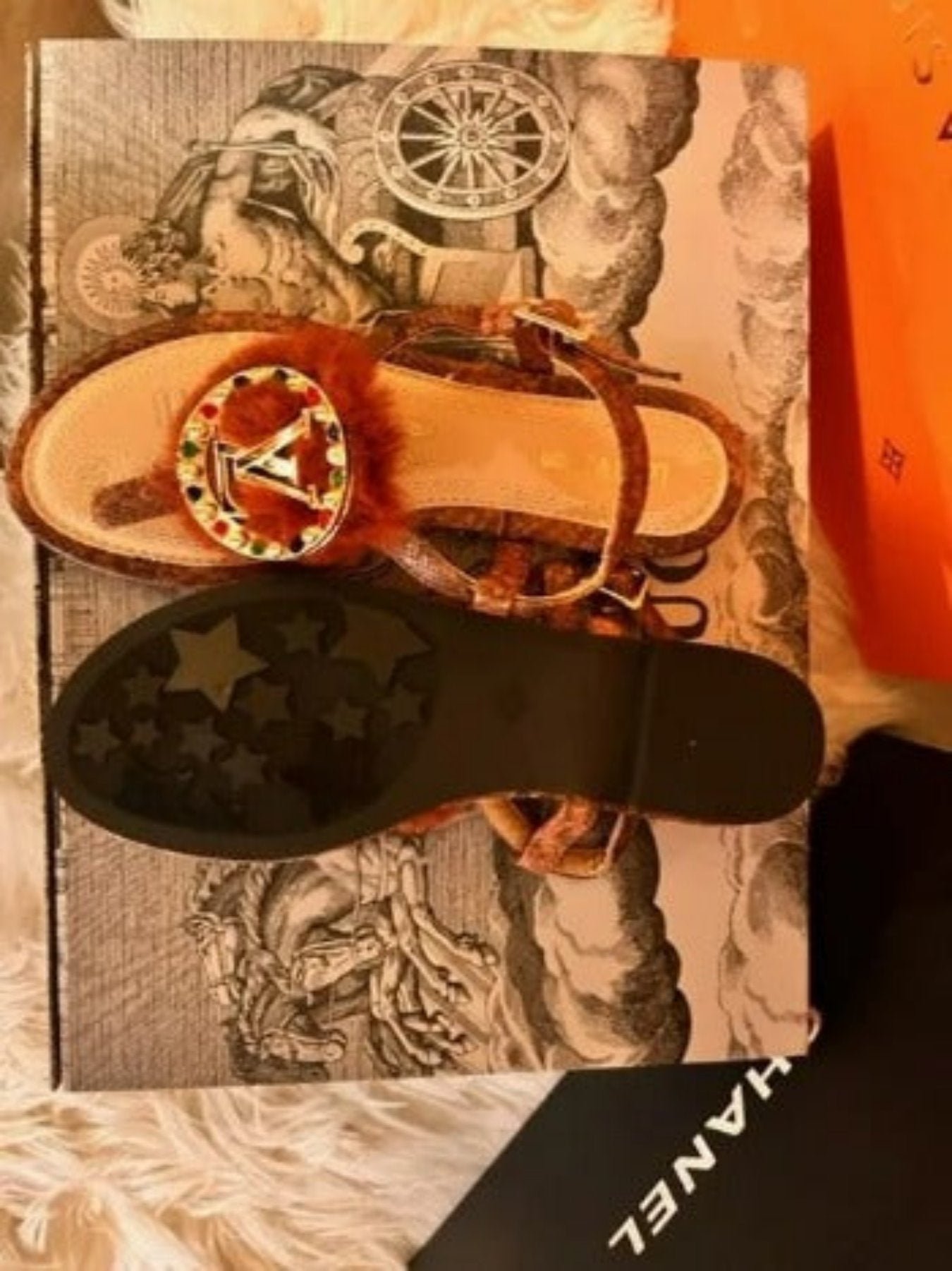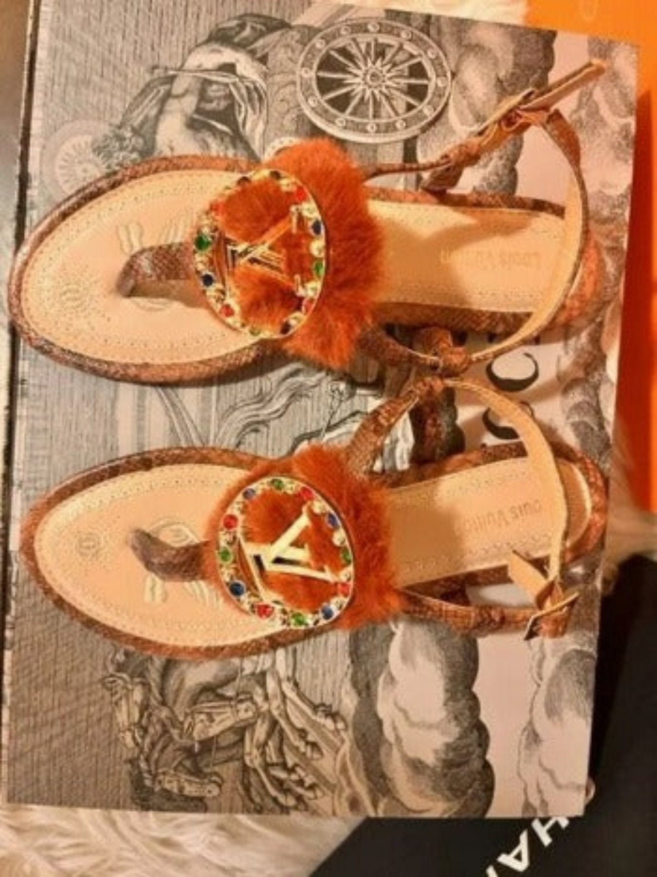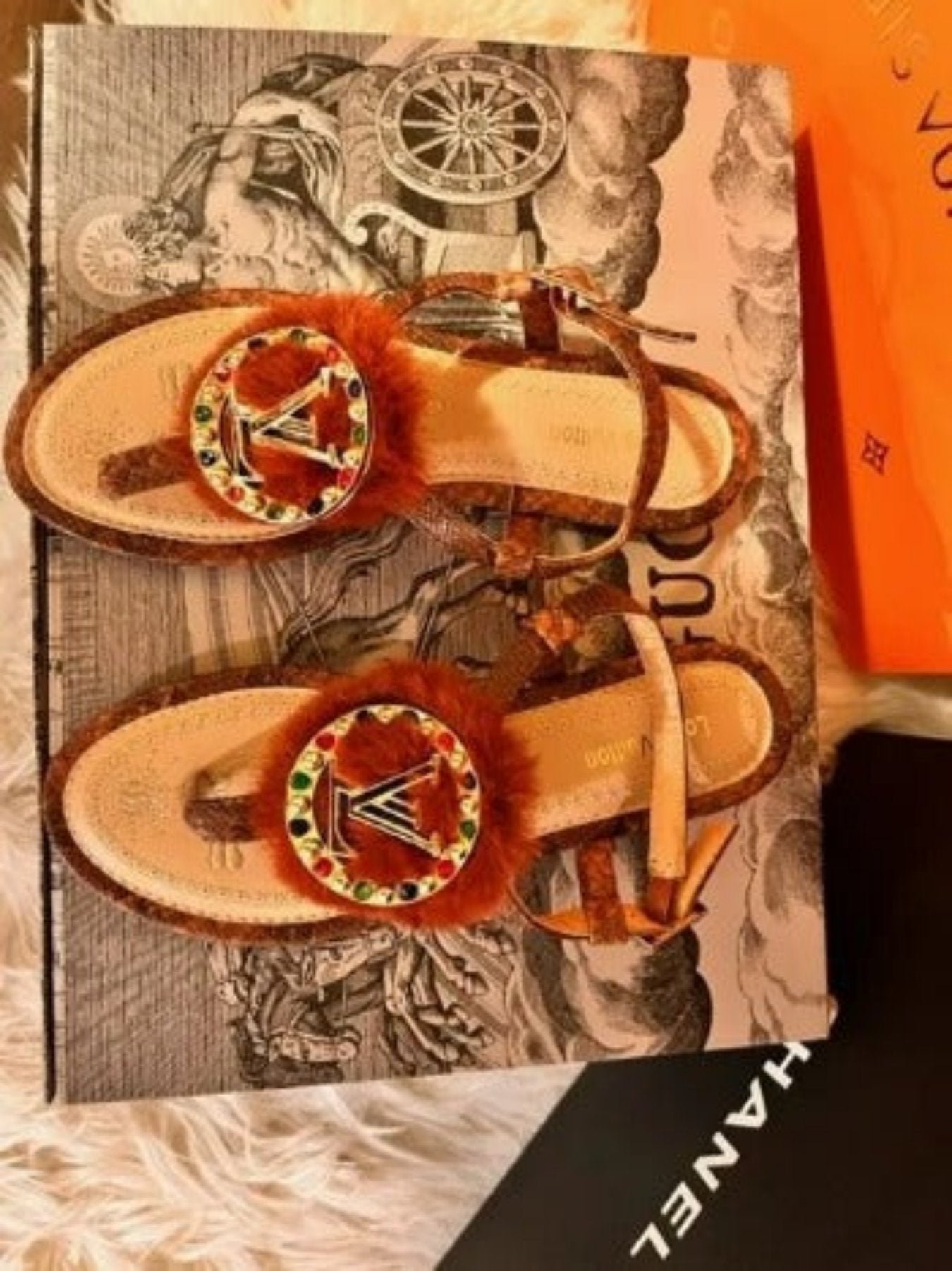 Women Fashion Design LV Sandals With Fur, very comfortable.