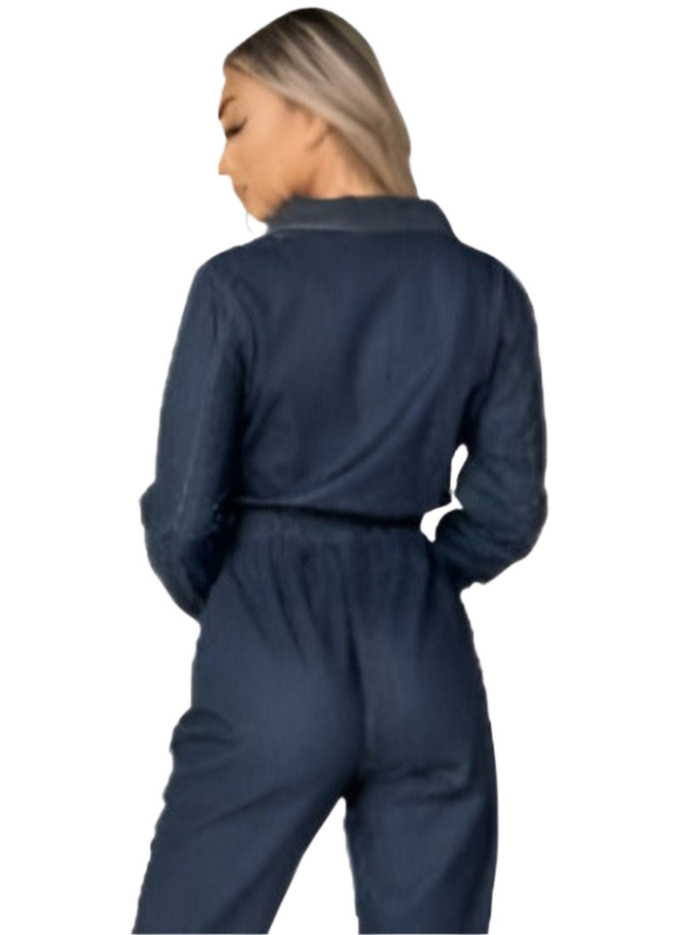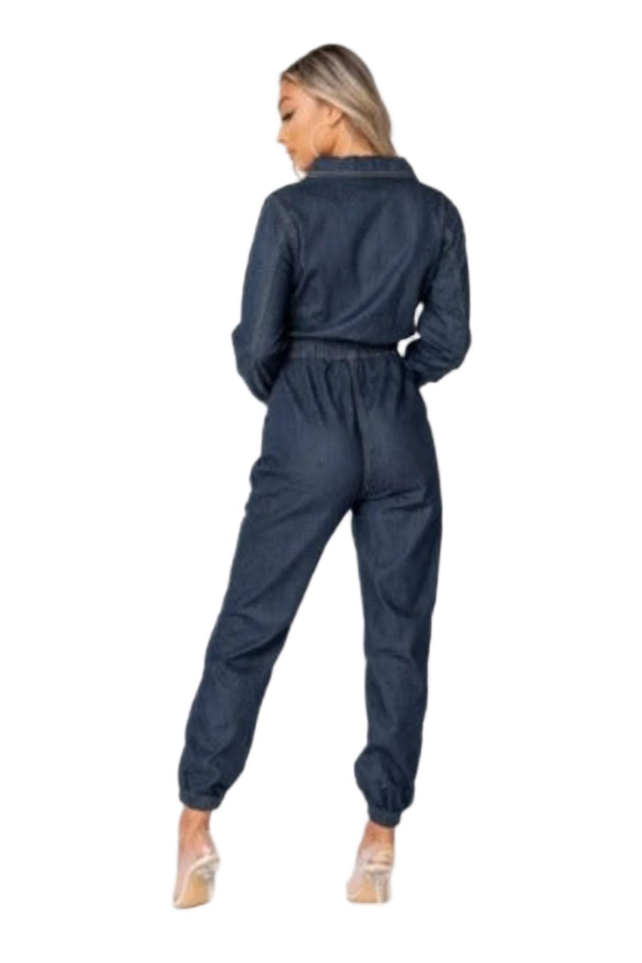 Jumpsuits are without a doubt, a statement style. The head-to-toe, all-in-one garment creates a striking look. Be a picture of perfection wearing this long sleeve denim jumpsuit featuring zip front & tie waist. Add strappy heels and statement earrings for a pretty evening look!