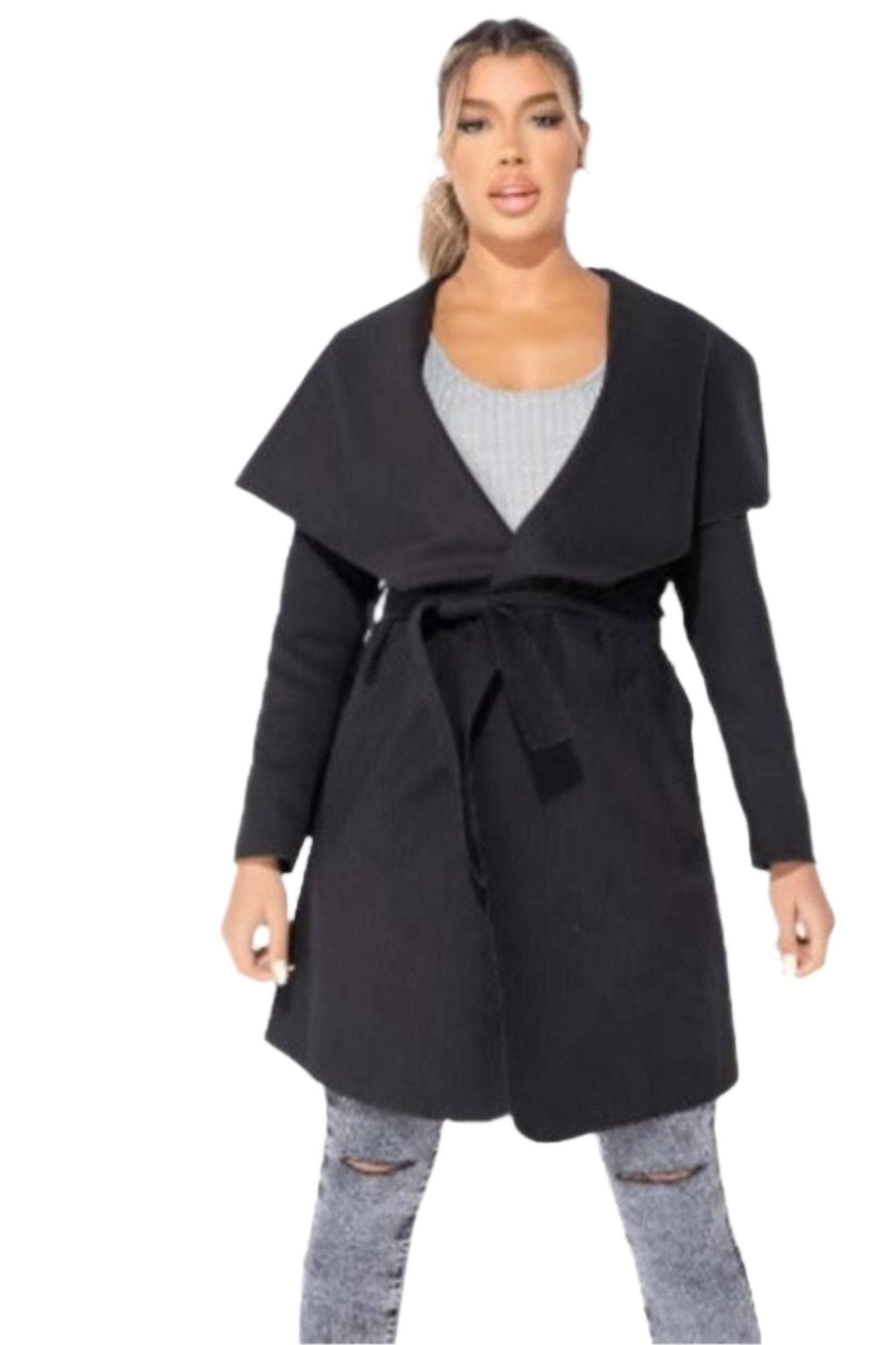 A waterfall jacket will keep you on trend all year round. A versatile piece which you can take from day to night with ease. This mid length belted jacket featuring waterfall collar & oversized fit can be layered over a crop top & teamed with a pair of skinny jeans for a hot evening look!