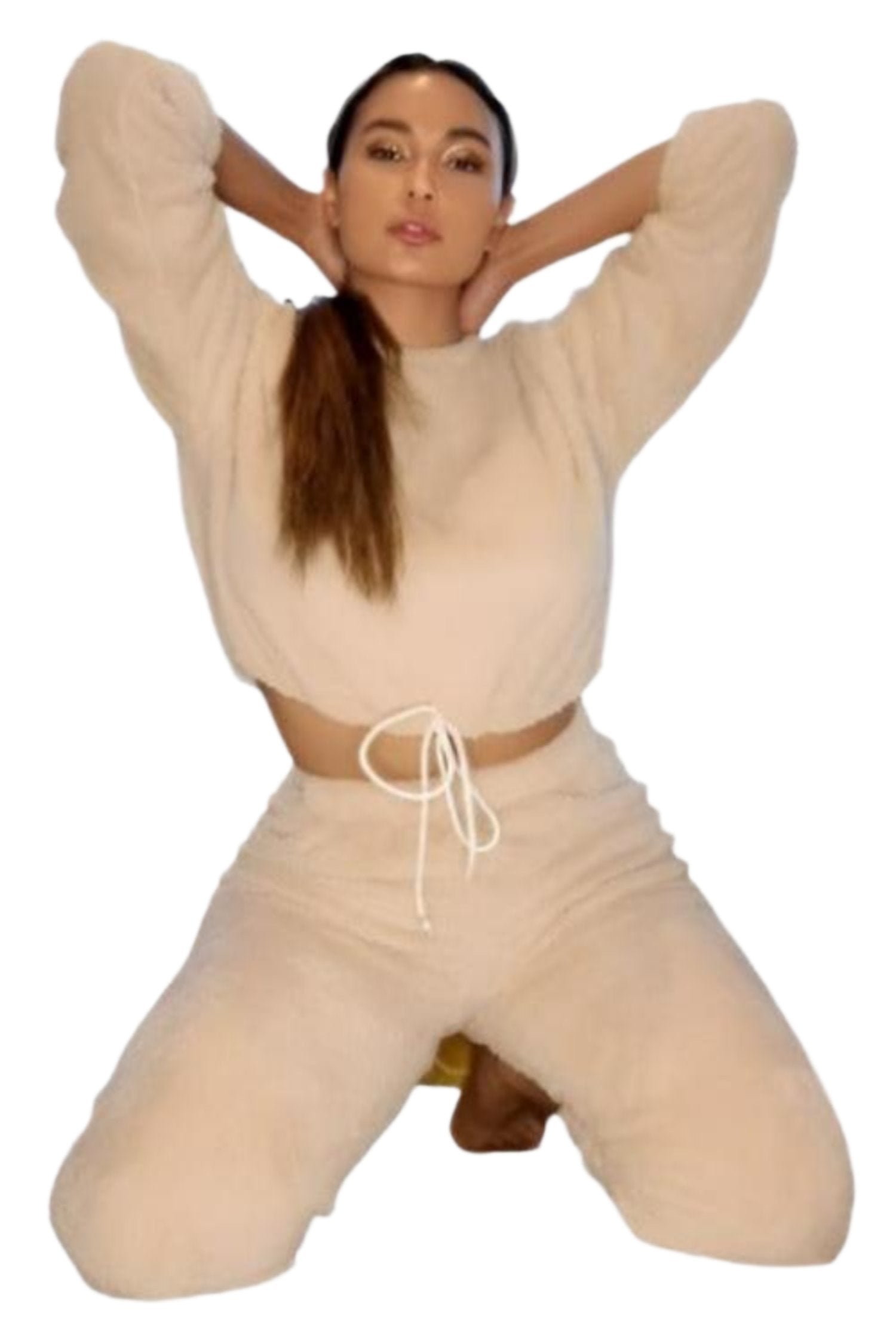 Perfect Pairs- co-ordinating outfits is seriously in right now, which means you can cut down on precious prep time with this teddy Borg lounge set. Team with trainers & a crossbag for a daytime chic look!