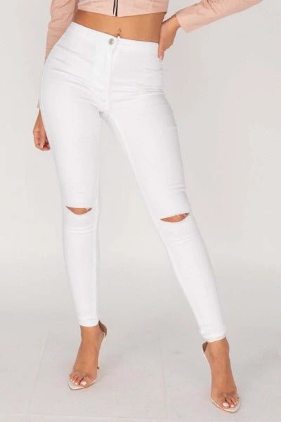 Jeggings are a real wardrobe staple season after season. These high waist jeggings featuring knee slash detail can be teamed with a crop top & strappy heels for a effortless chic look.