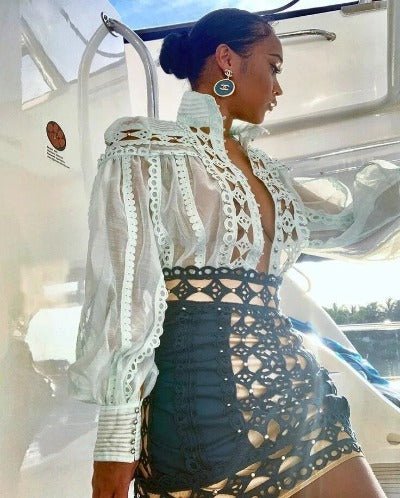 V-Neck Floral Pattern Blouse – Soft Cotton, Slight Stretch, Button Front, Long Sleeve, Mock Neck – Perfect for Spring & Fall, Womens Chic Shirting.